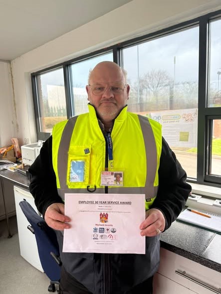 Our Operations Director Liam Griffiths had the honour to present our exceptional officer David Cooke with his 30 year service award. David started on the 1st April 1996 as a retail security officer on our Aldi UK contract and in 2019 progressed to our Toolstation UK contract at their Middleton DC.